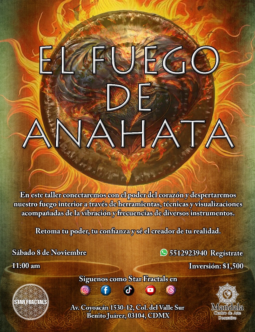 Conectaremos con el poder del corazón y despertaremos nuestro fuego interior a través de herramientas, técnicas y visualizaciones acompañadas de la vibración y frecuencias de diversos instrumentos 🎼 Retoma tu poder y confianza!